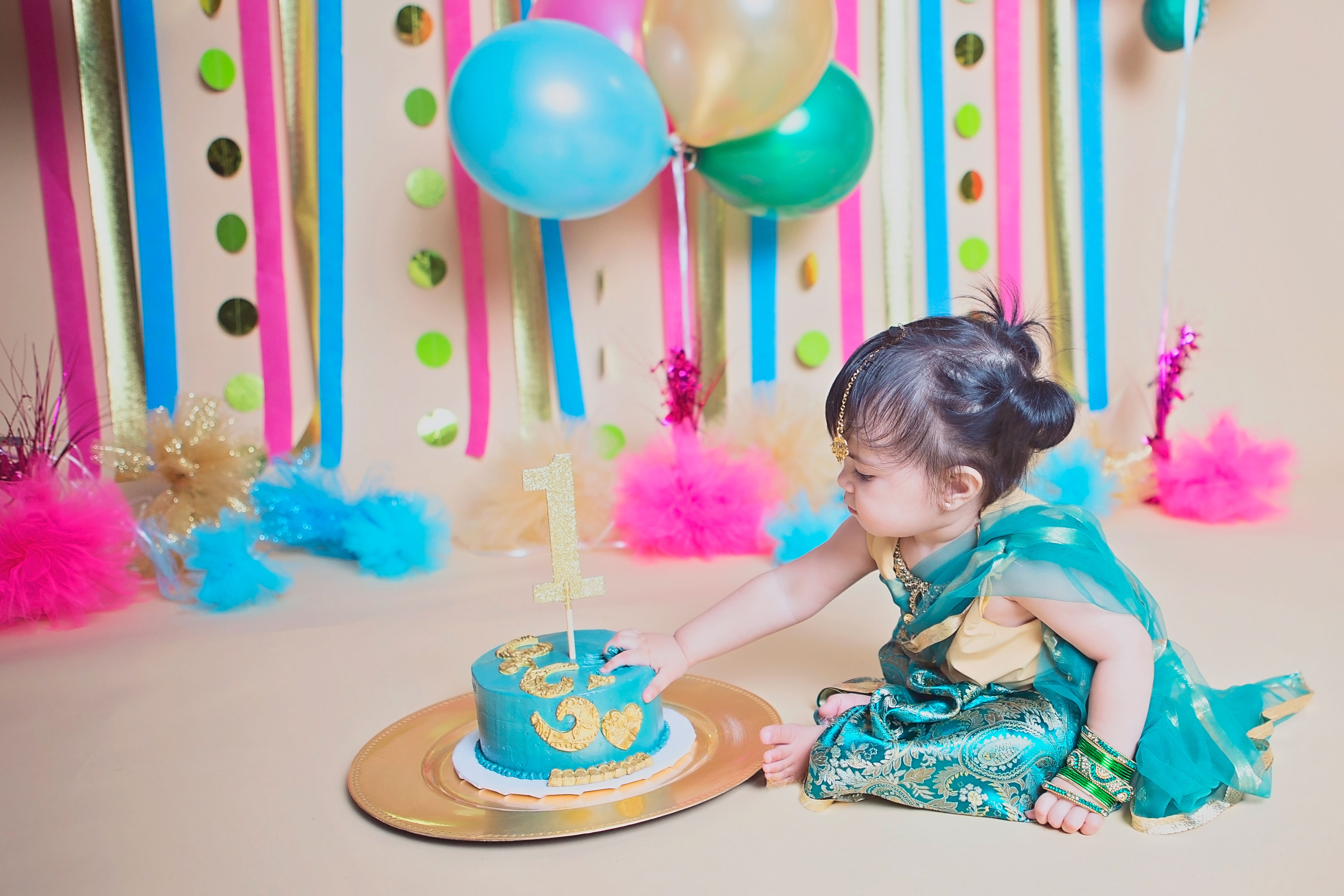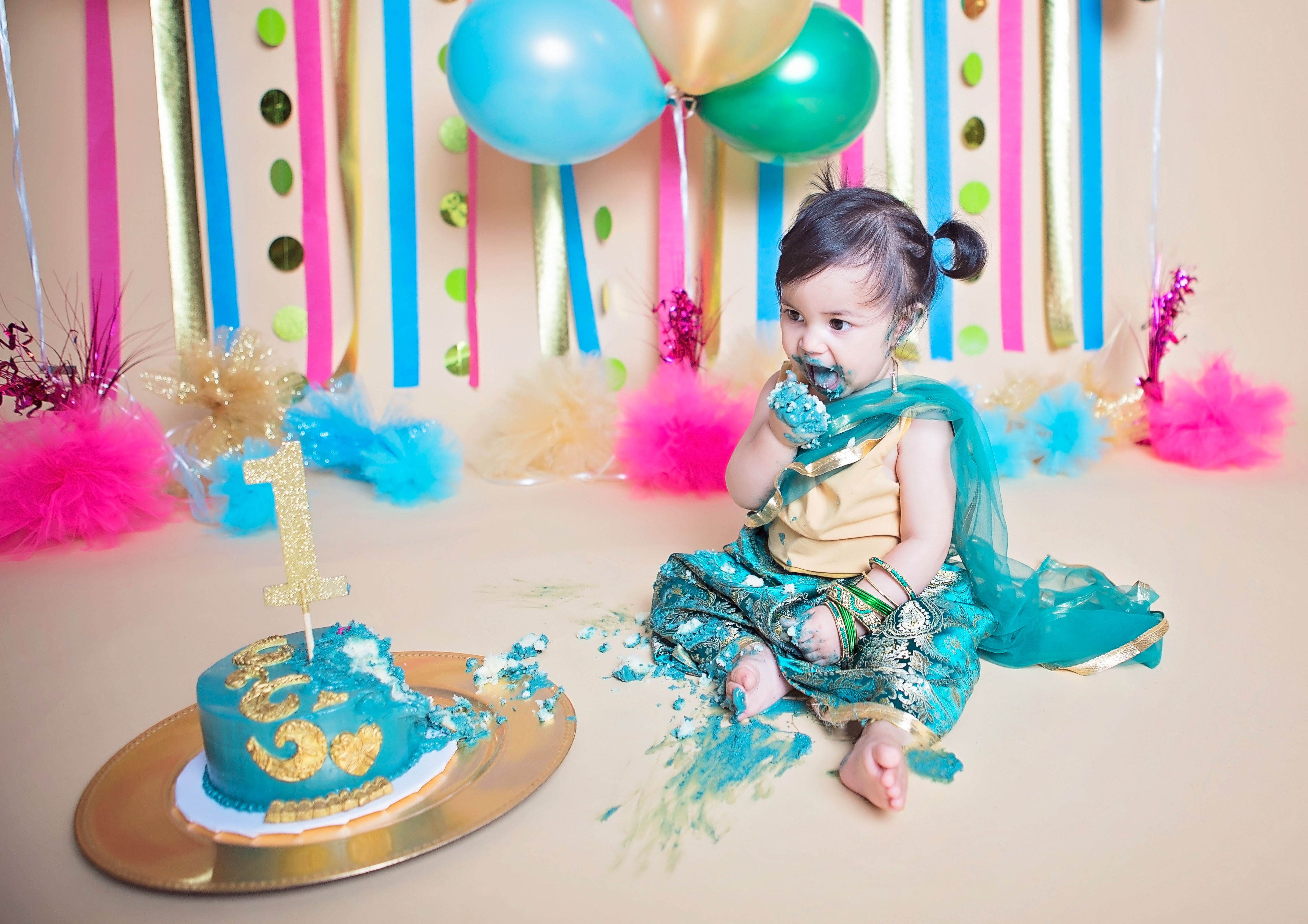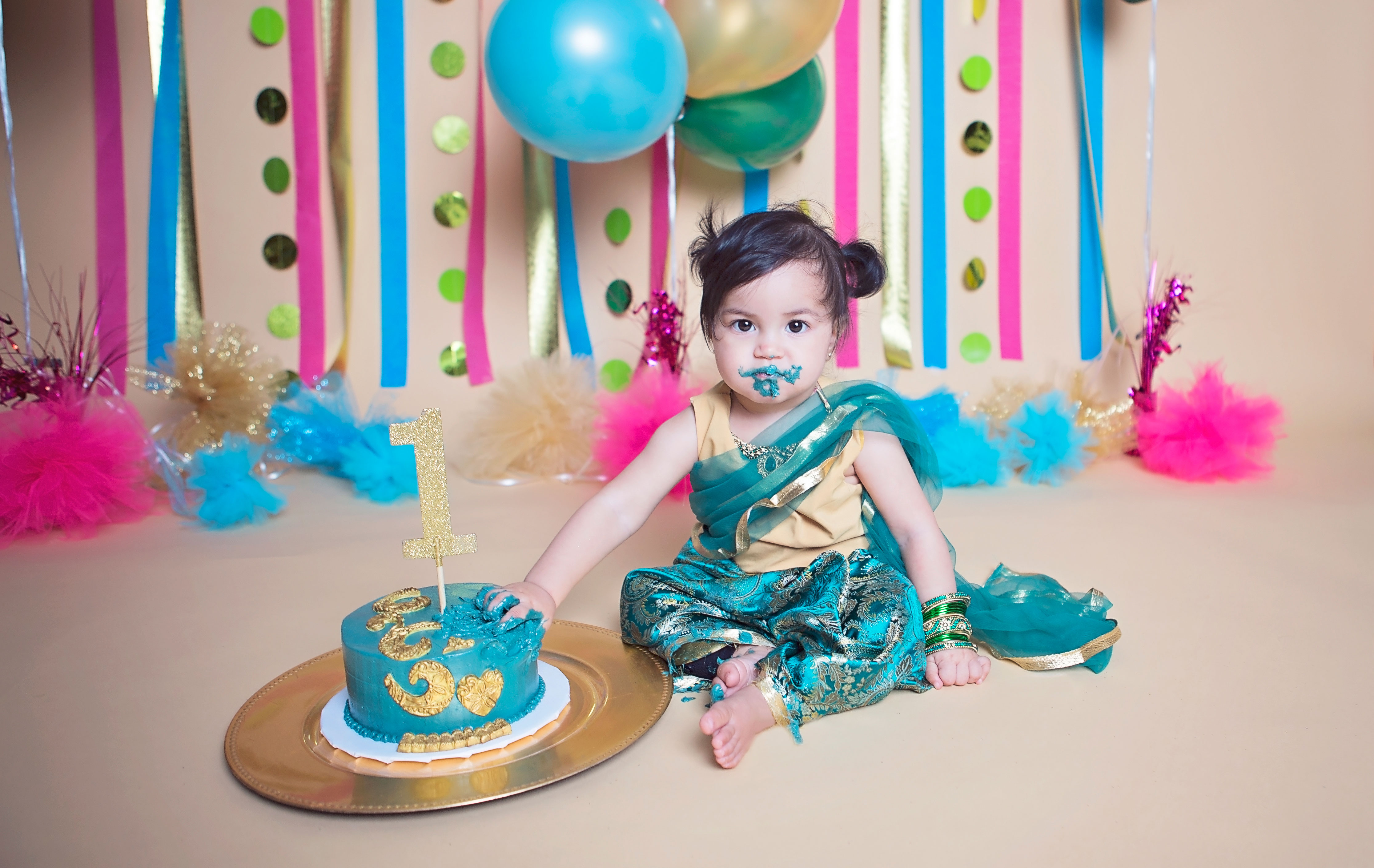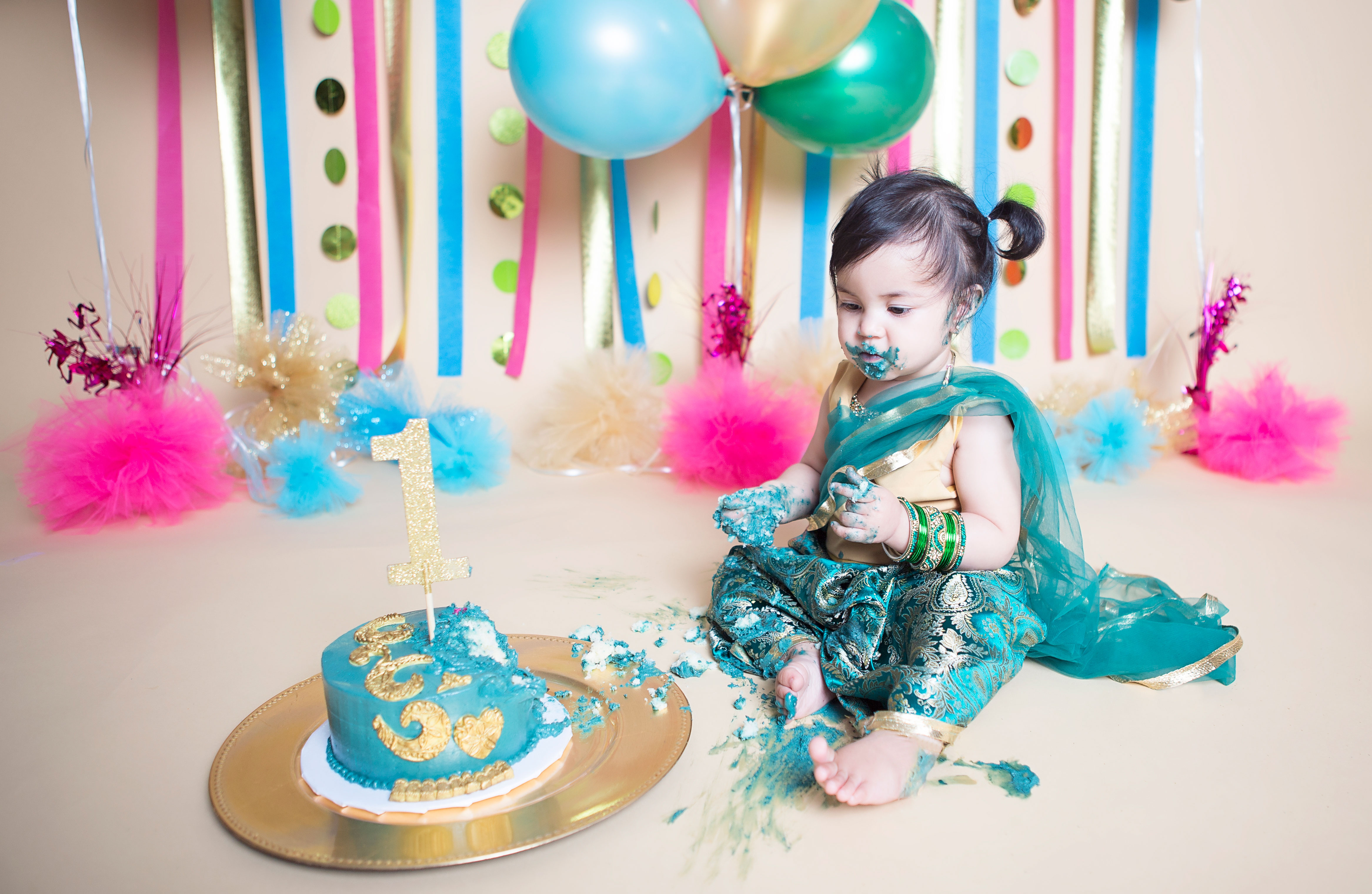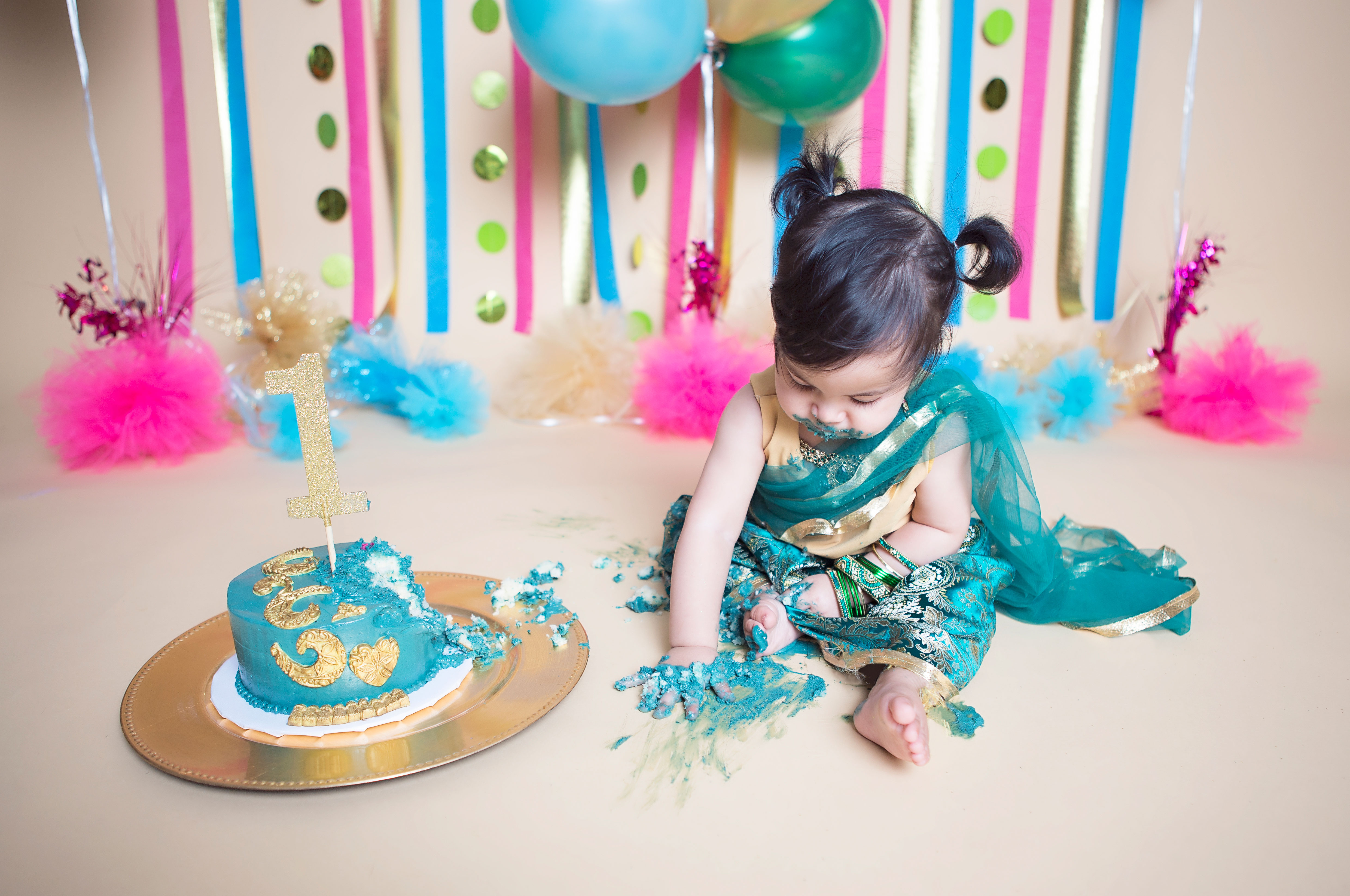 Maryam turned 1 on June 11. This was one cake smash I was extremely excited about. I had been planning it all in my head for months. I even made her little outfit – a cute little sari – to represent half of her cultural background, India.